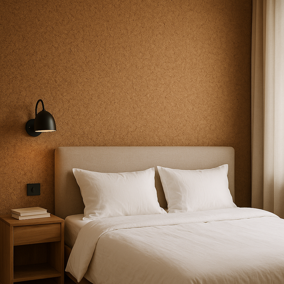 Inspirado na própria natureza da cortiça, o produto oferece uma textura quente e orgânica, capaz de transformar paredes interiores, fachadas protegidas, mobiliário e elementos decorativos em superfícies respiráveis, higroscópicas e livres de químicos.